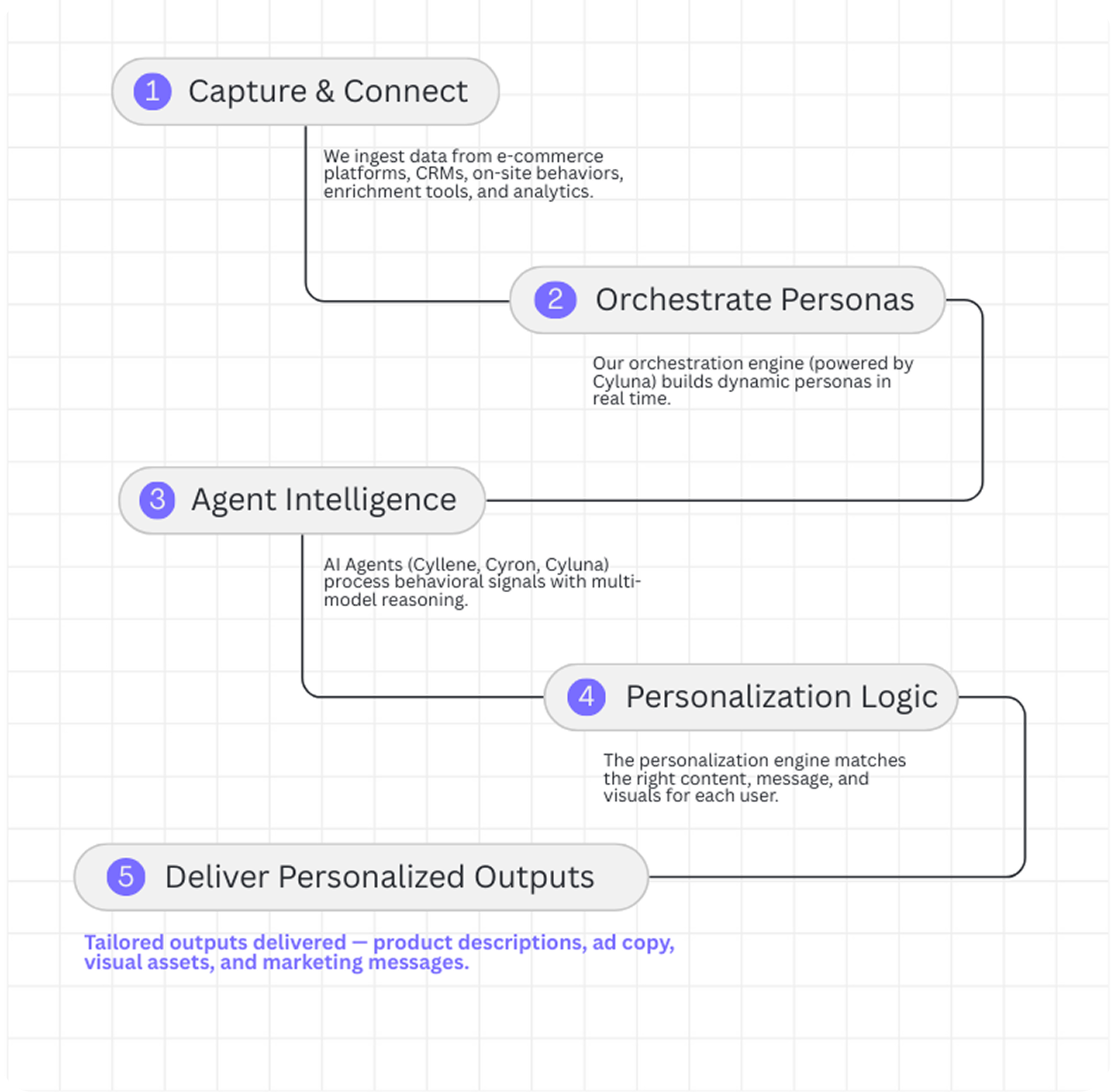 Cypien’s core strengths shine through modular solutions — from intelligent product copy to dynamic, on-demand visuals.